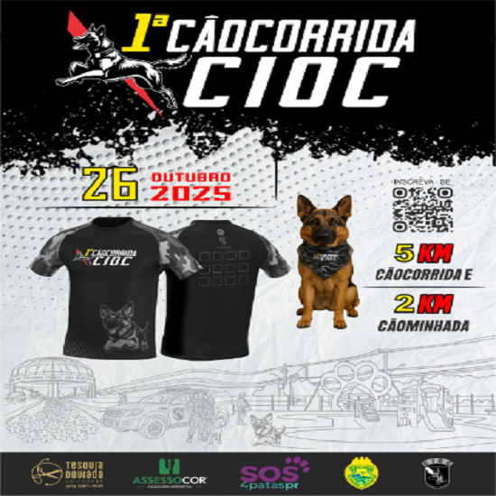 A 1ª CÃOCORRIDA CIOC, será realizada no dia 26/10/2025 (Domingo), com largada prevista às 06:00h.
